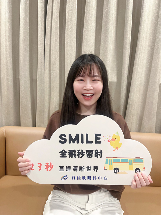 平常配戴眼鏡遇到天氣熱、進出冷氣房眼鏡容易起霧,運動懶得換隱眼,戴眼鏡也不方便,經朋友介紹還有朋友也來白佳欣眼科做眼睛雷射手術,所以來加入雷射手術,不用戴眼鏡好方便,不用怕起霧,很快樂,謝謝醫師!