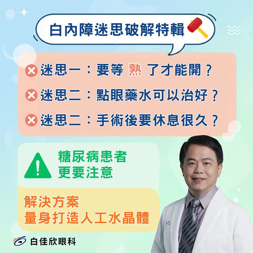 今天想跟大家聊聊,白內障最常見的三大迷思![]()