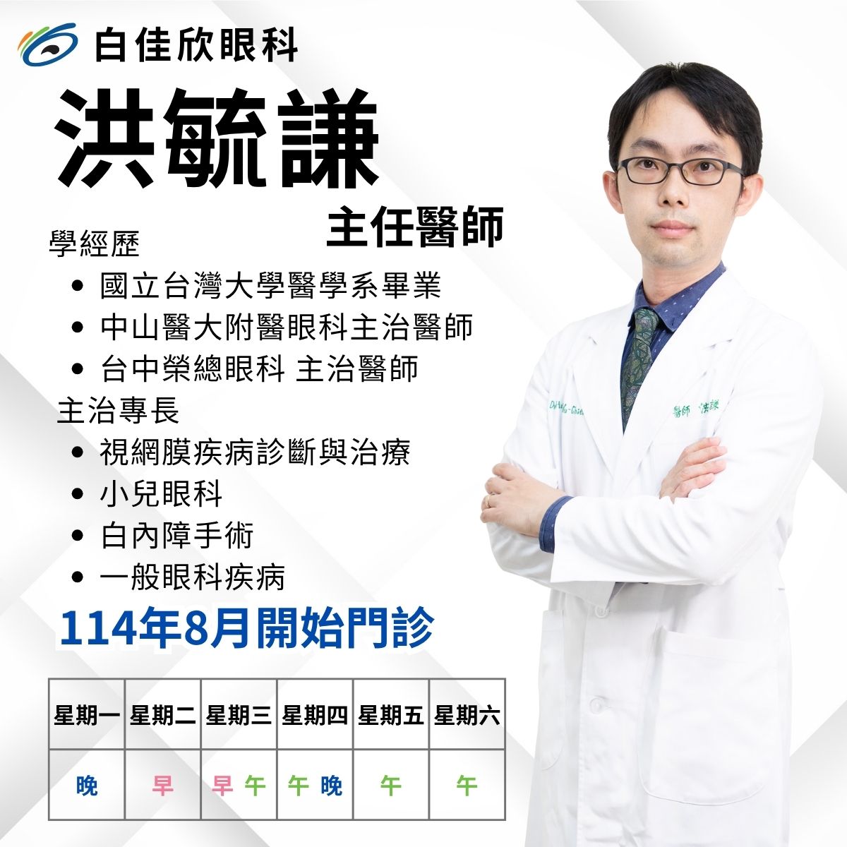 洪毓謙 主任醫師 加入白佳欣眼科!】